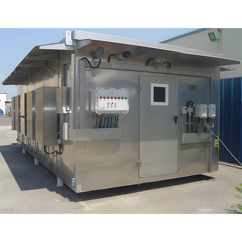 防爆水質(zhì)分析小屋通常由防爆材料制成,具有防爆、防火、防腐蝕的特性。它通常包括一個(gè)密閉的房間,里面設(shè)有水質(zhì)分析儀器和設(shè)備,如pH計(jì)、溶解氧儀、電導(dǎo)率計(jì)等。該小屋內(nèi)部空氣流通系統(tǒng)通常與外界隔離,以防止危險(xiǎn)氣體或化學(xué)物質(zhì)進(jìn)入小屋。此外,小屋還配備了緊急停電系統(tǒng)和緊急通風(fēng)系統(tǒng),以應(yīng)對(duì)突發(fā)情況。